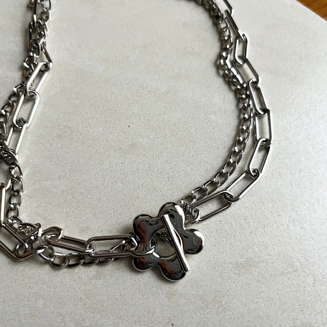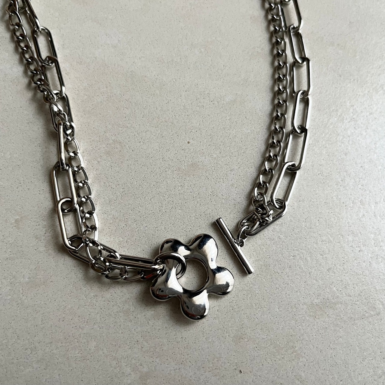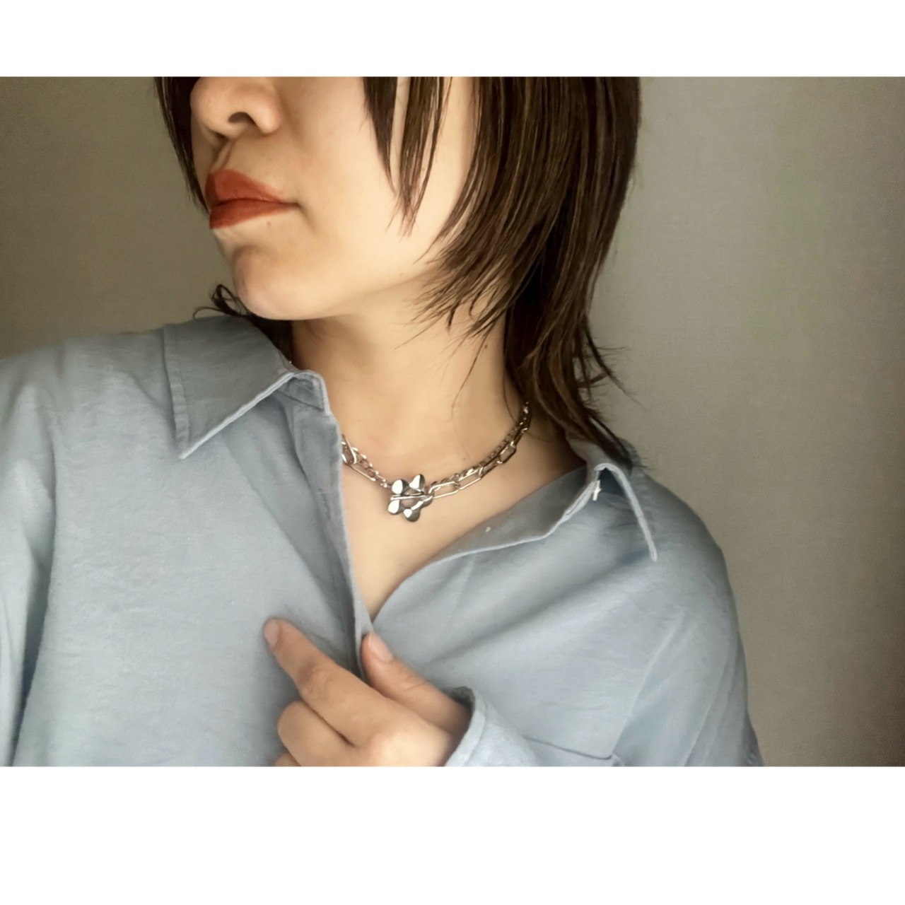 デイジーモチーフのメタルパーツが主役のチェーンネックレス。