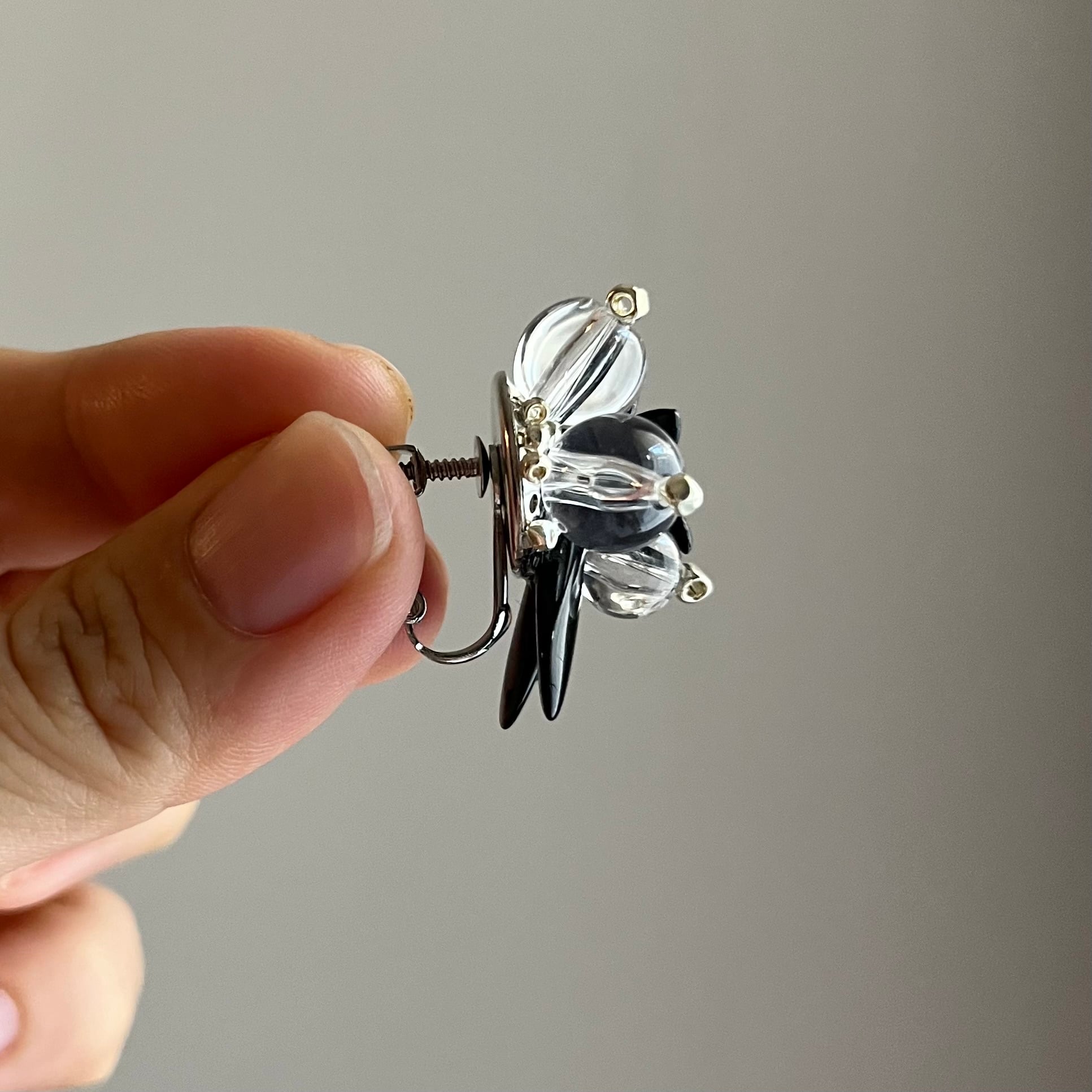 透明感のあるクリアパーツとブラックのダガーパーツを組み合わせた、華やかなイヤーアクセ。