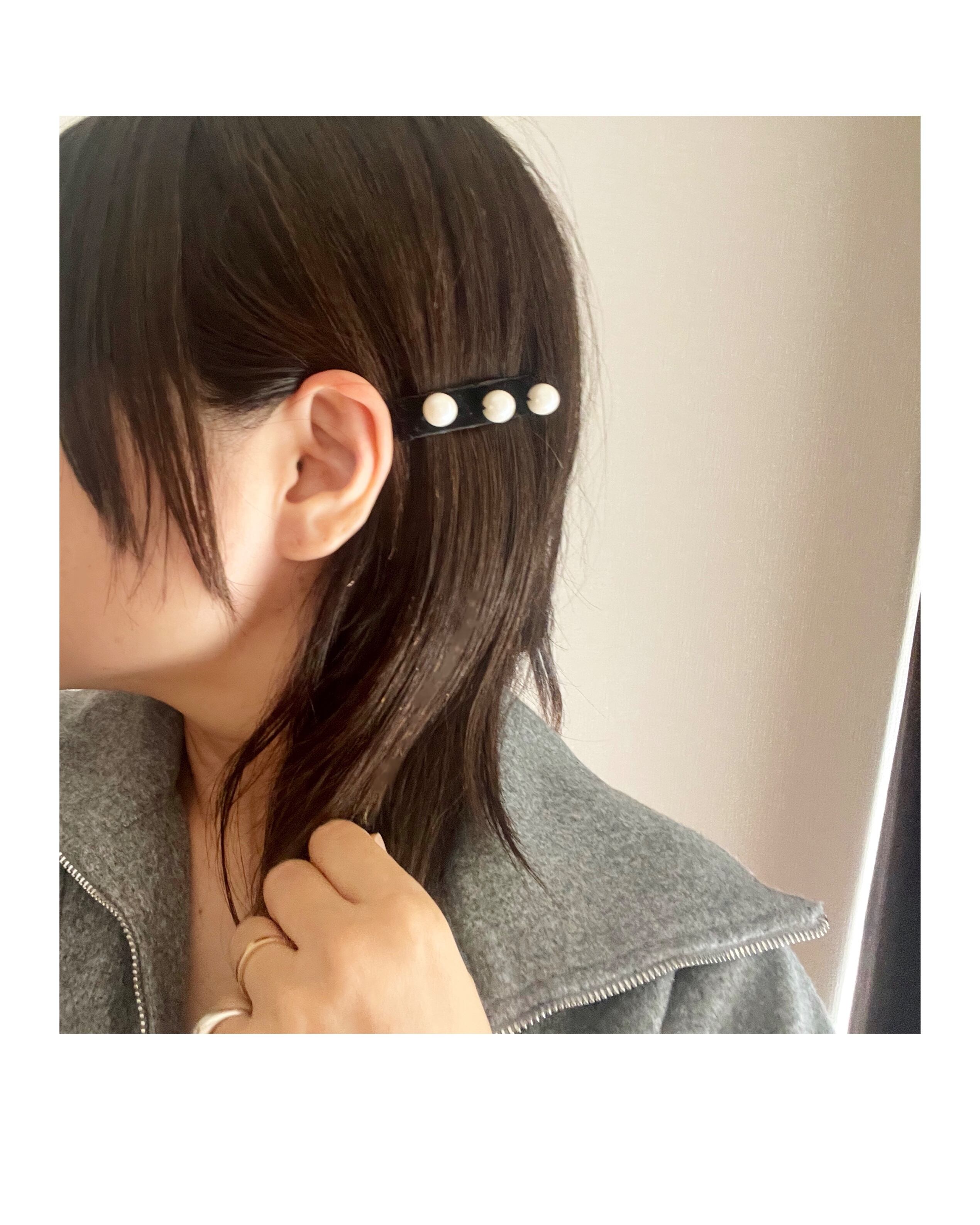 上品なツヤのパールをあしらったバレッタを、使いやすい二個セットで。