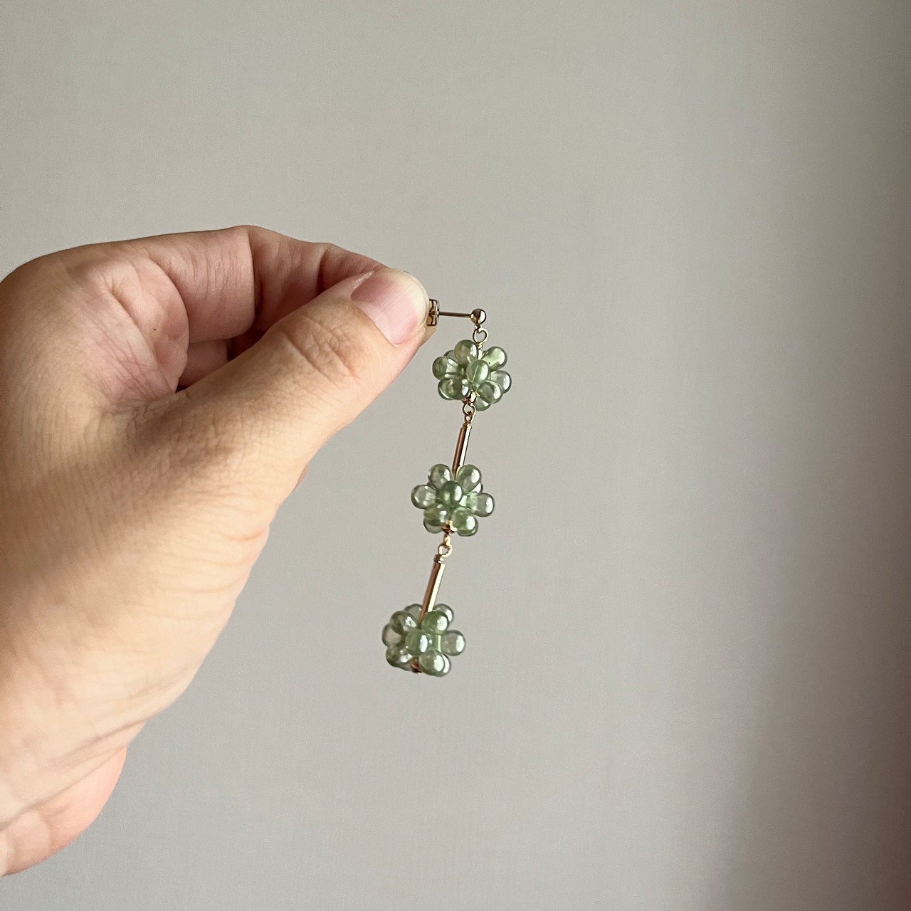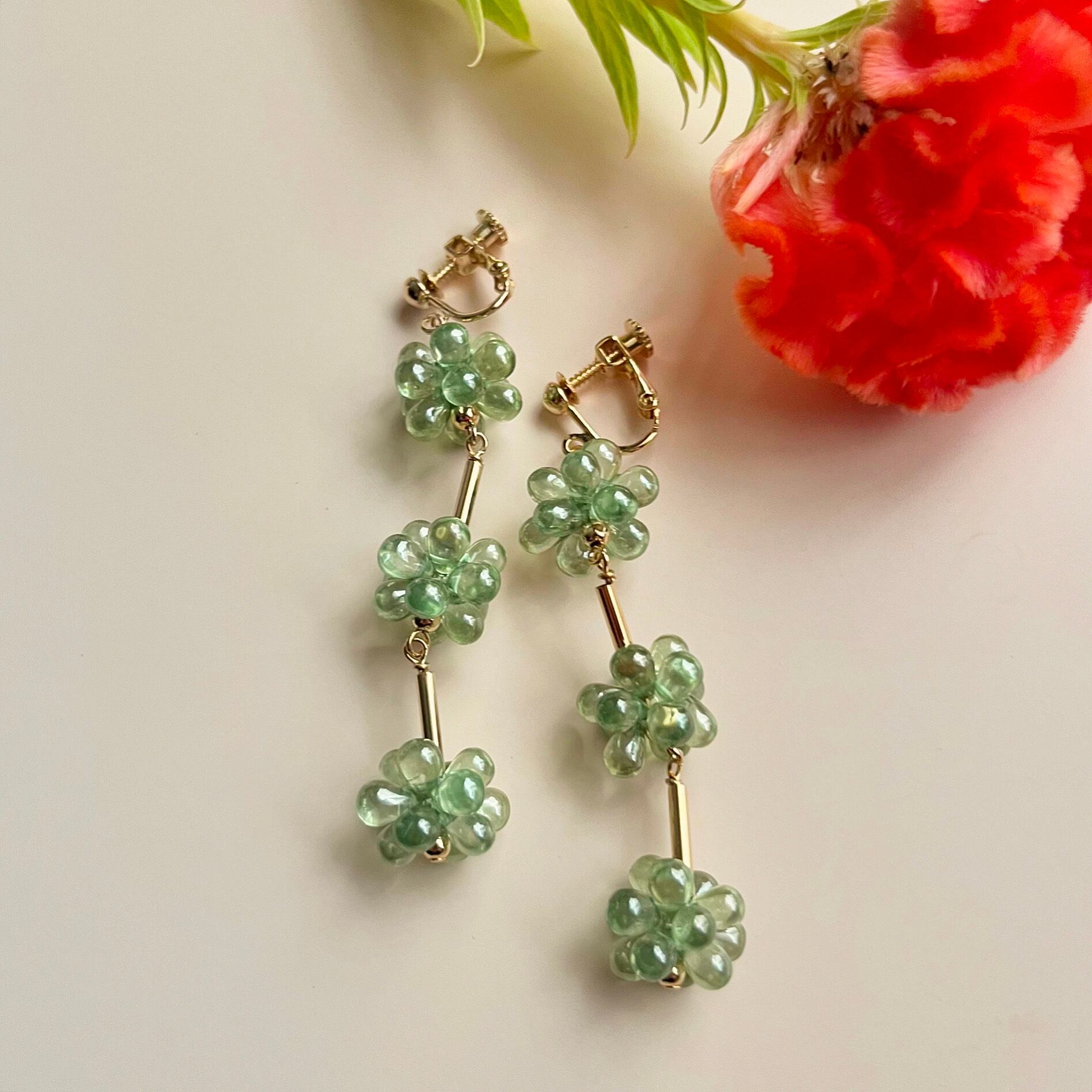 グリーンのビーズとゴールドの金具の組み合わせは洗練された雰囲気になります。