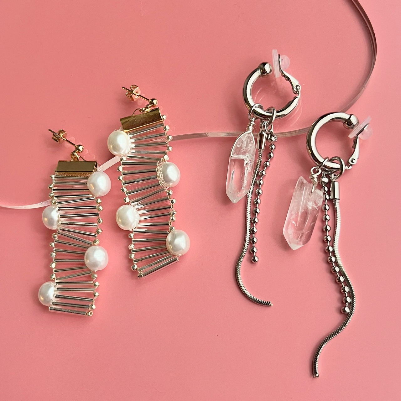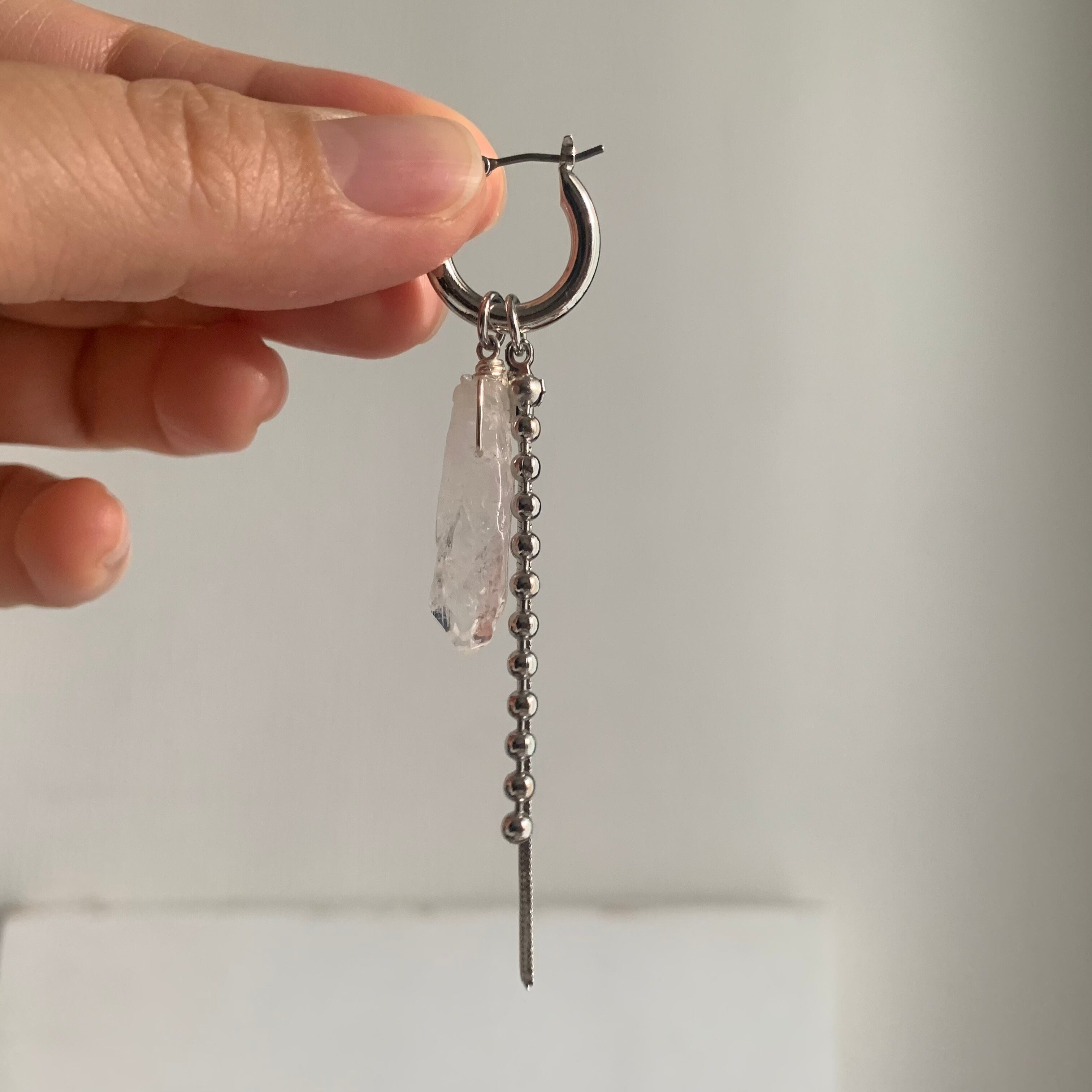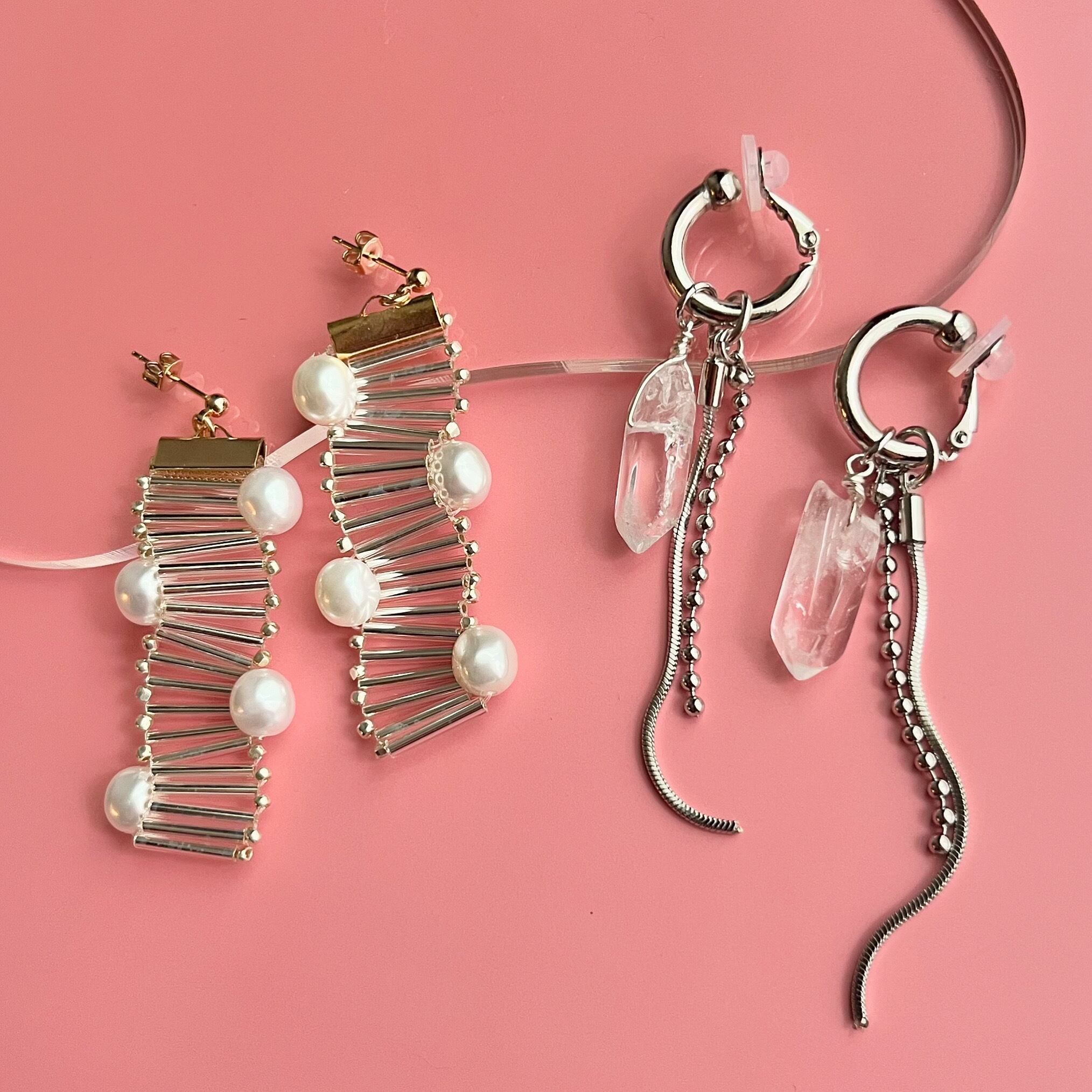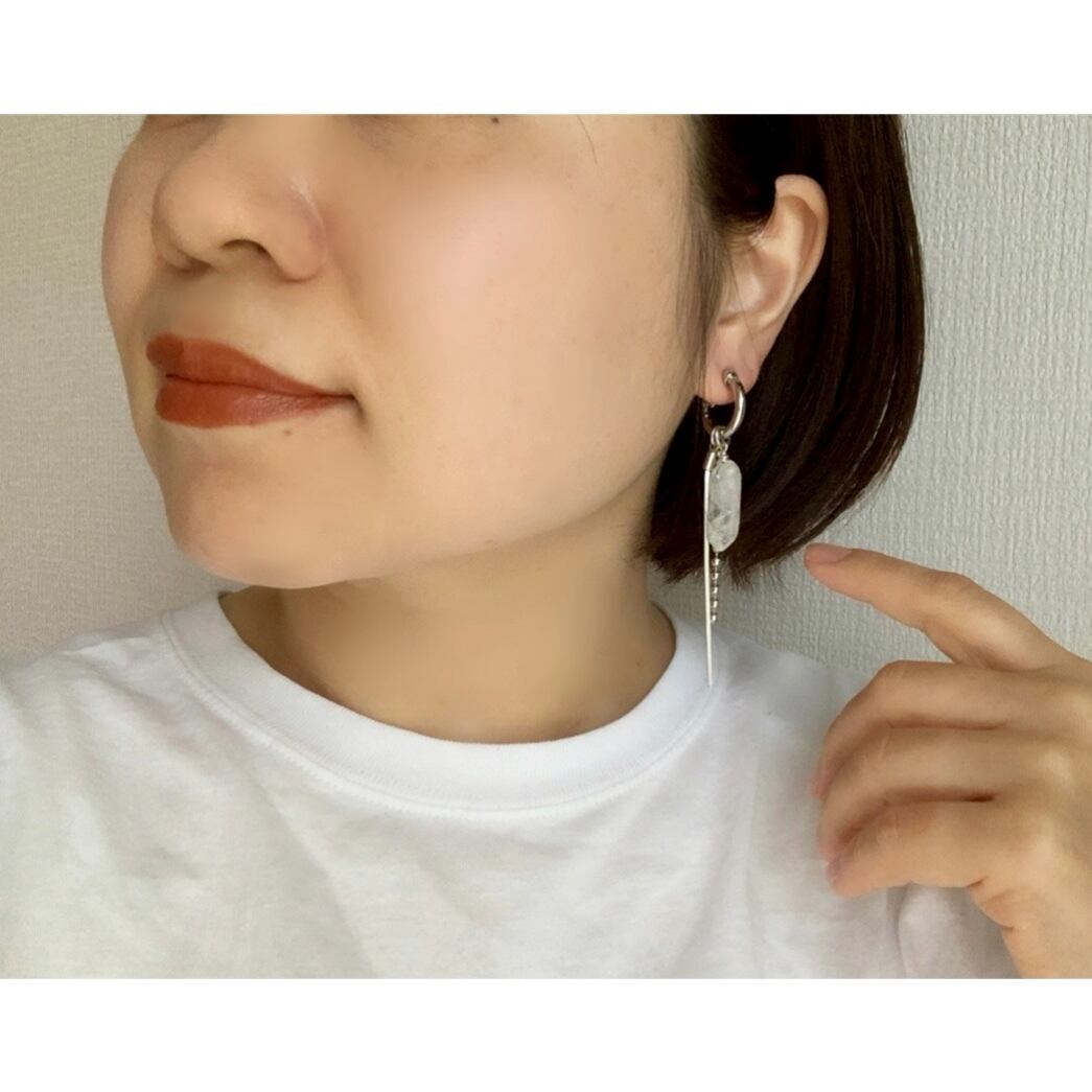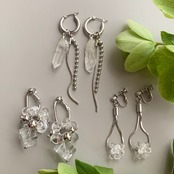 天然石のクリスタルを使った涼しげでシャープなイヤーアクセ。
