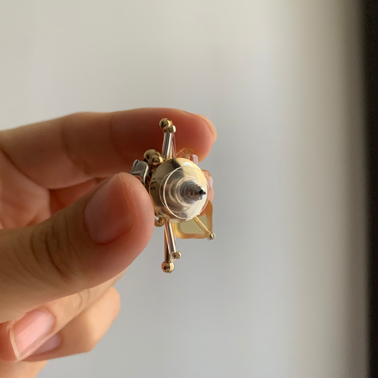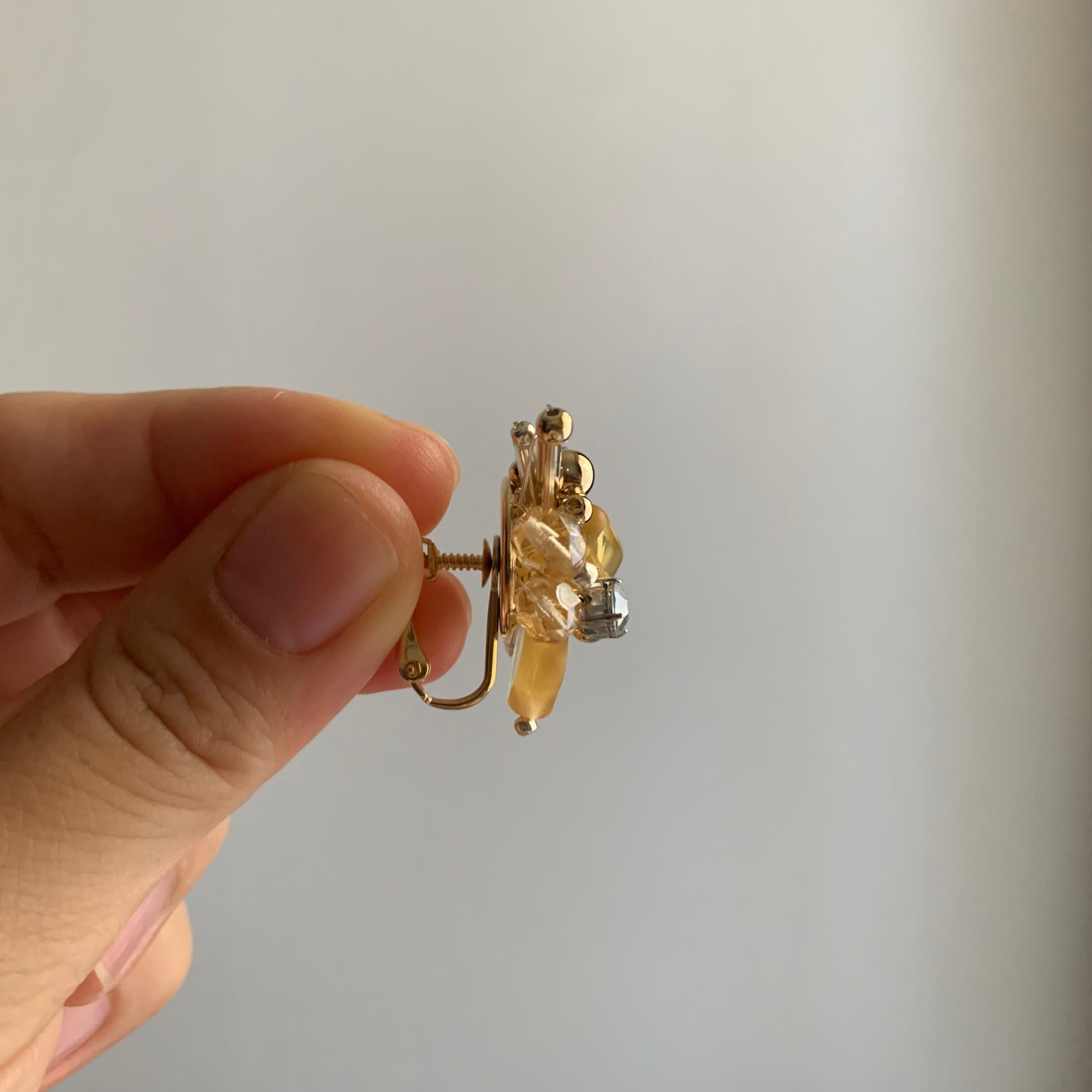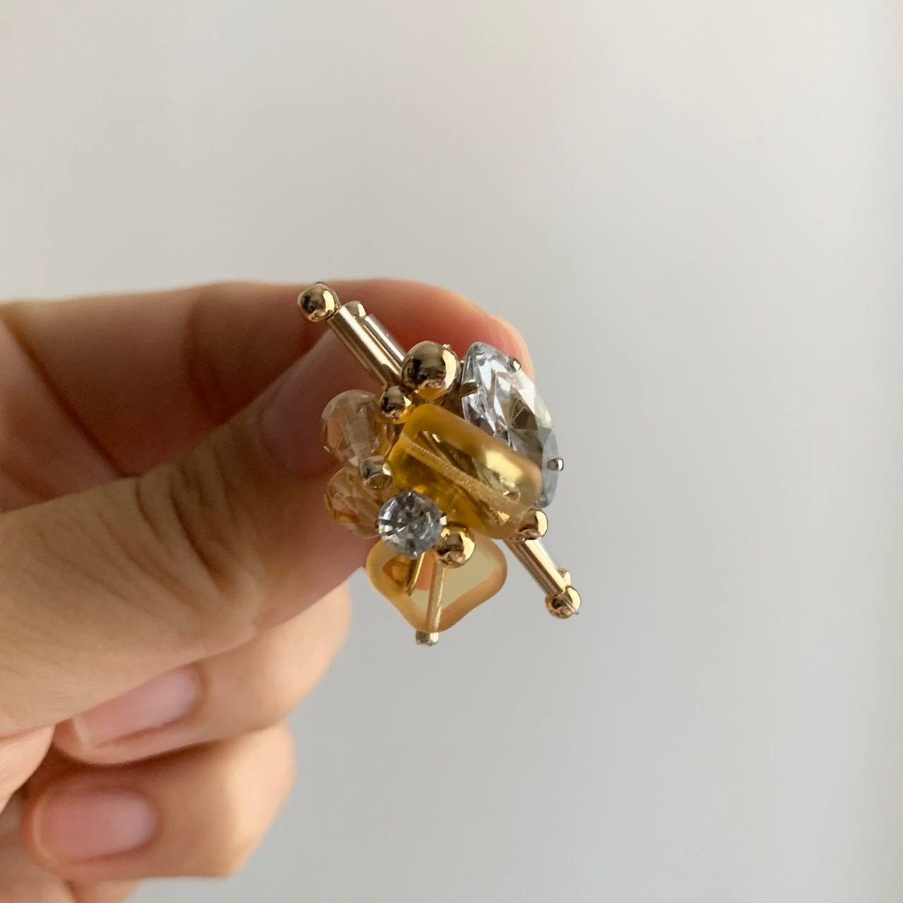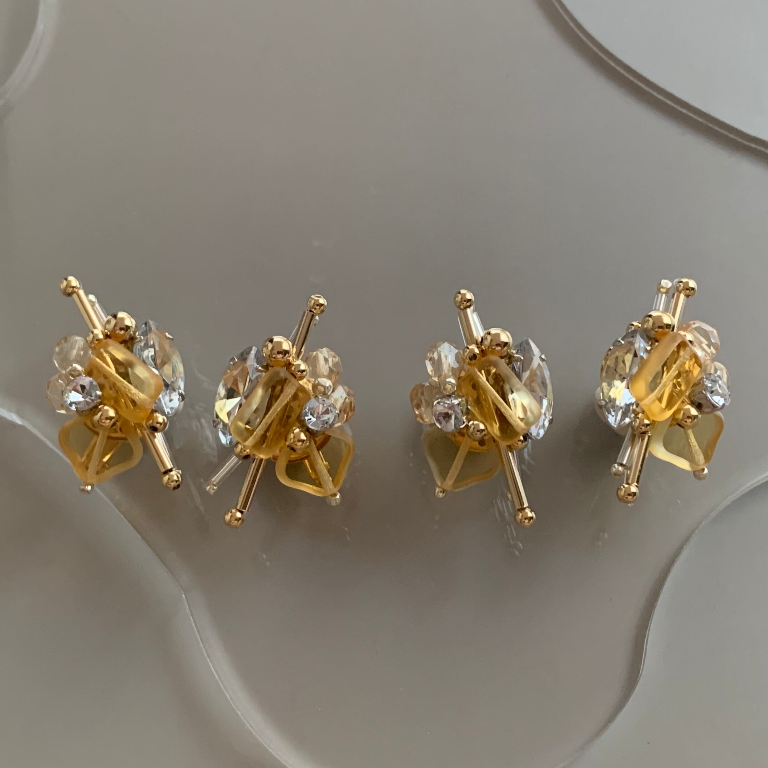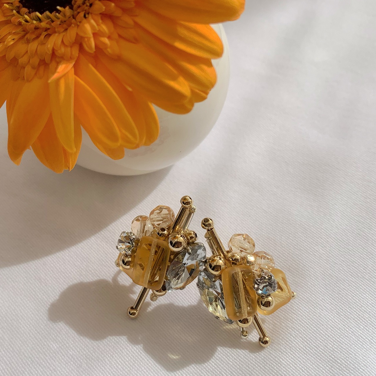 透け感のあるイエローなので、ゴールド金具との相性が抜群で、ぎゅぎゅっと集まったパーツたちのまとまりが抜群です。